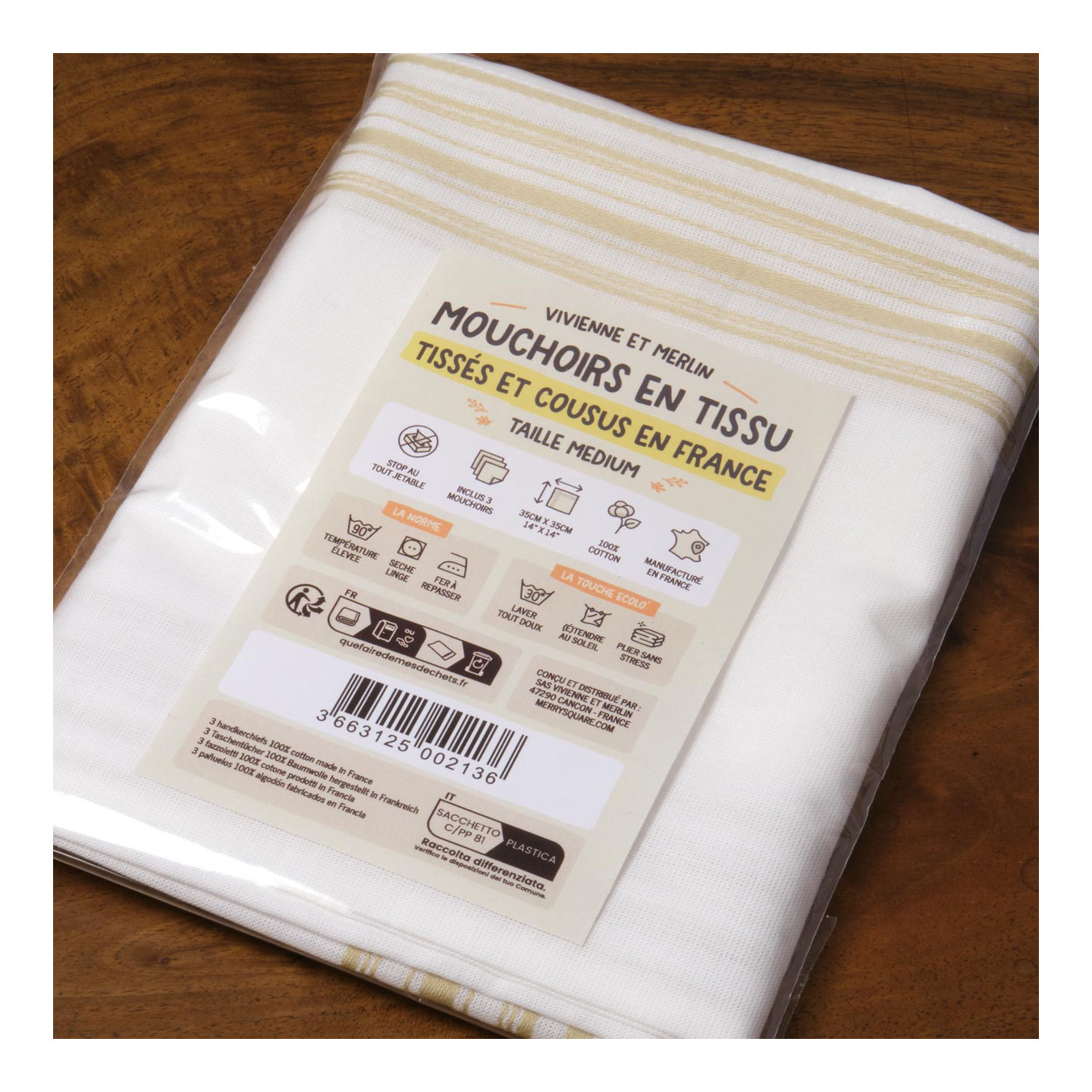 MOUCHOIRS 100% FRANCAIS ♦ 3 mouchoirs conçus, tissés, cousus et conditionnés en France