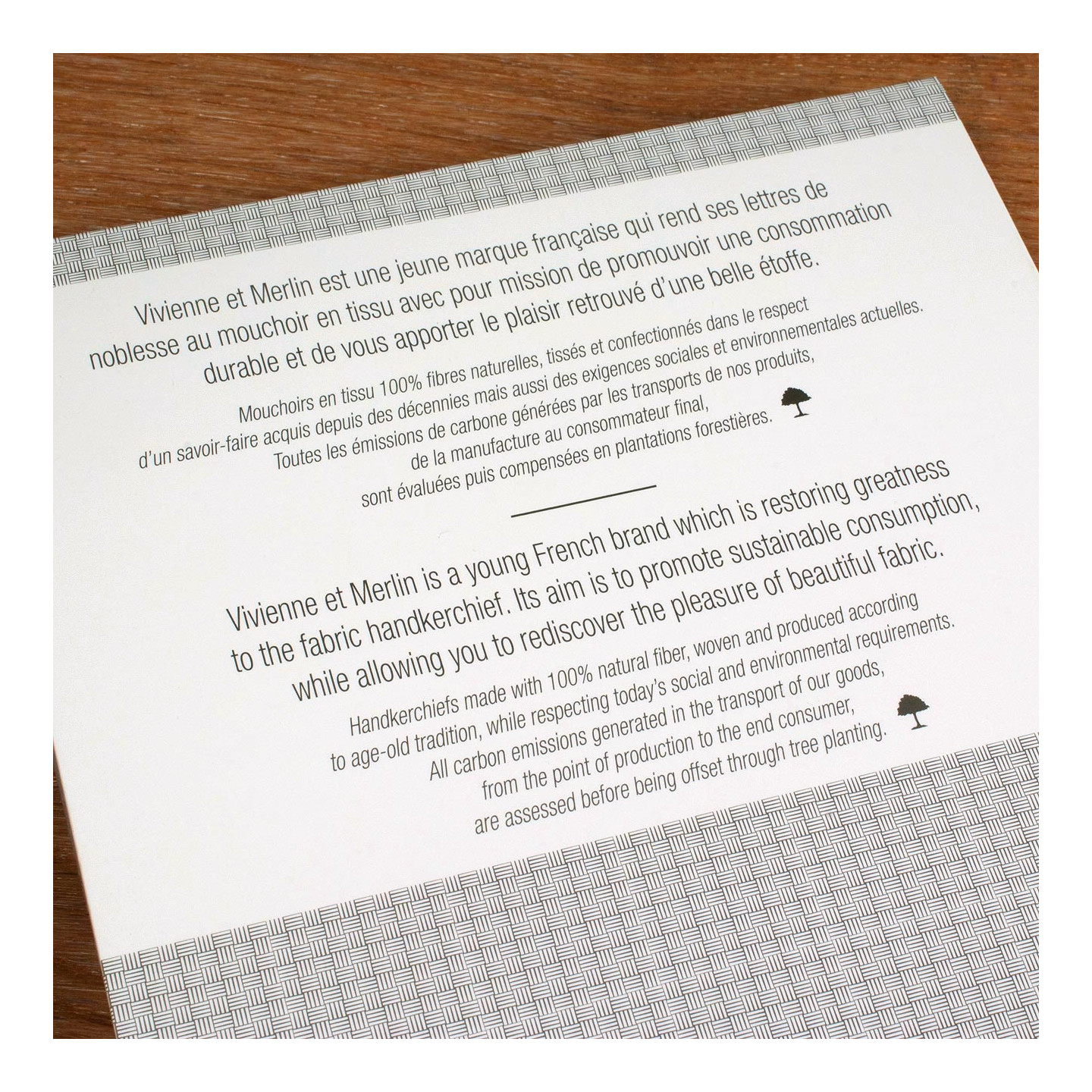 Nous sommes si fiers de cette collection exclusive que nous l'avons nommée 'LES BEAUX MOUCHOIRS' et signée du nom de l'entreprise.