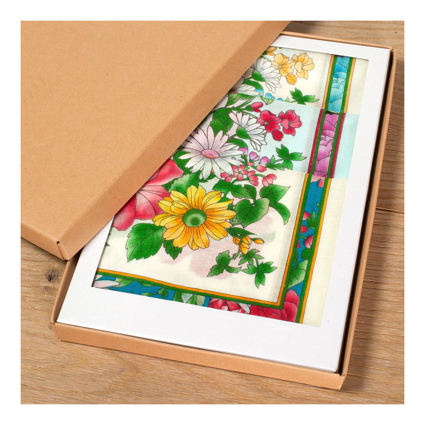 COFFRET KRAFT ♦ Présentés dans une séduisante boîte cloche en matériau recyclé, signée de la marque. D’origine, le couvercle est emboité par-dessous et le tout protégé sous un film cristal pour une visualisation optimale des motifs. Pour offrir et se l’offrir.