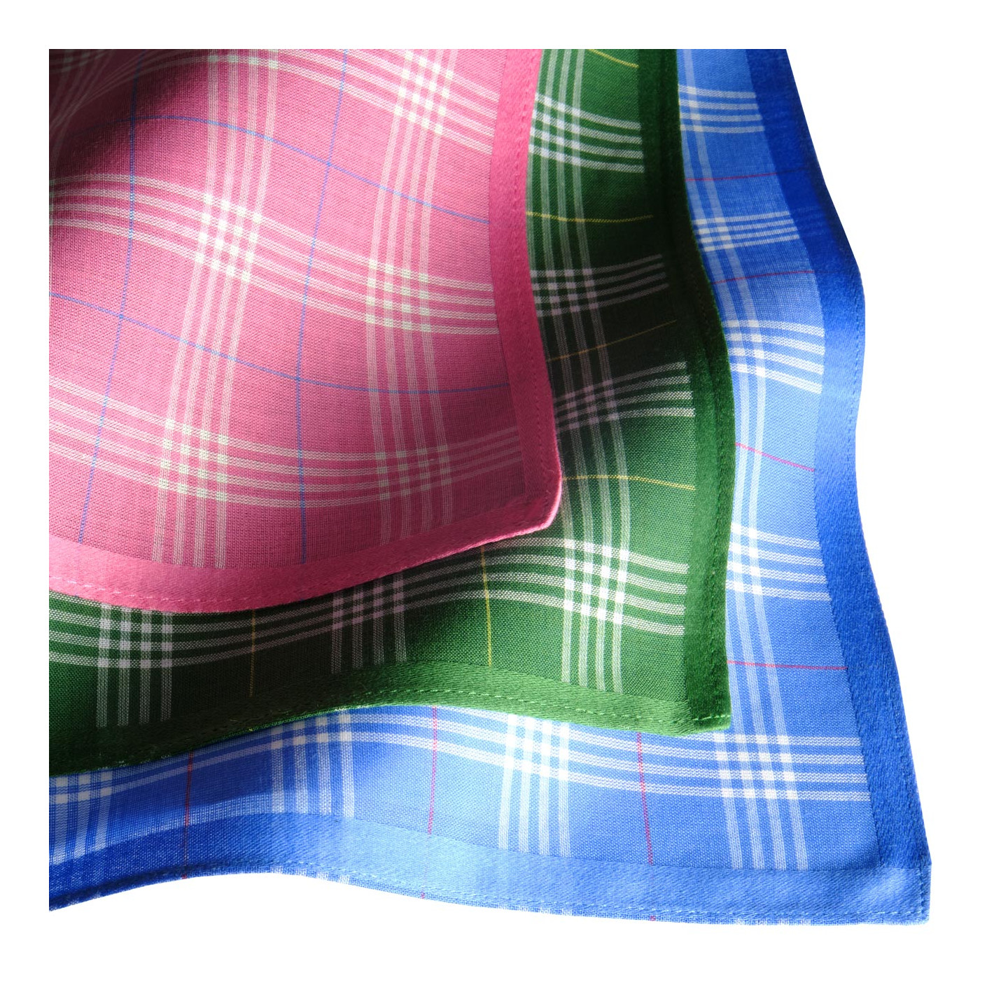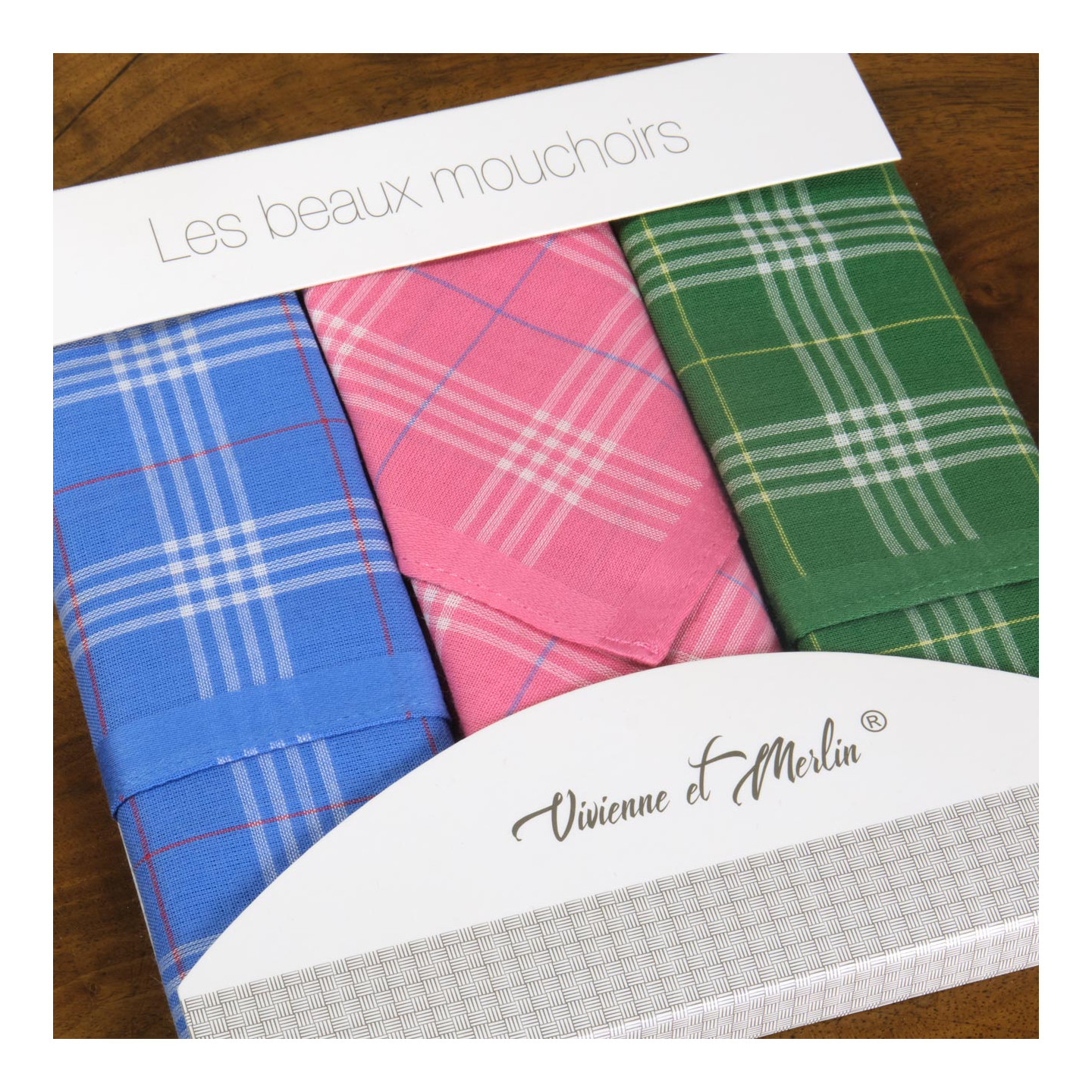 - Assortiment de 3 mouchoirs aux couleurs assorties, conditionnés dans un blister cartonné.