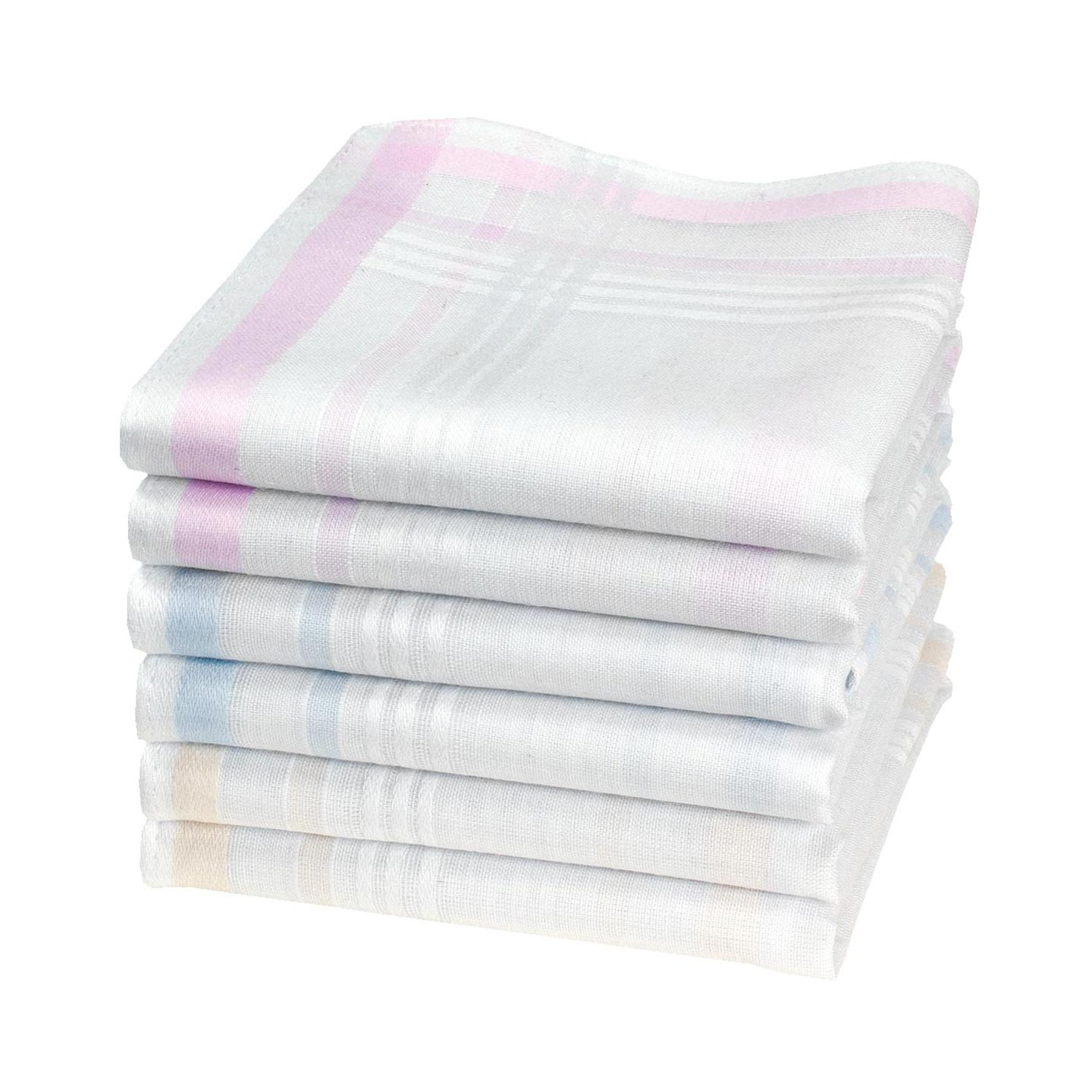 Petits mouchoirs classiques femme à dominante blanche, 100% coton, 3 couleurs assorties.