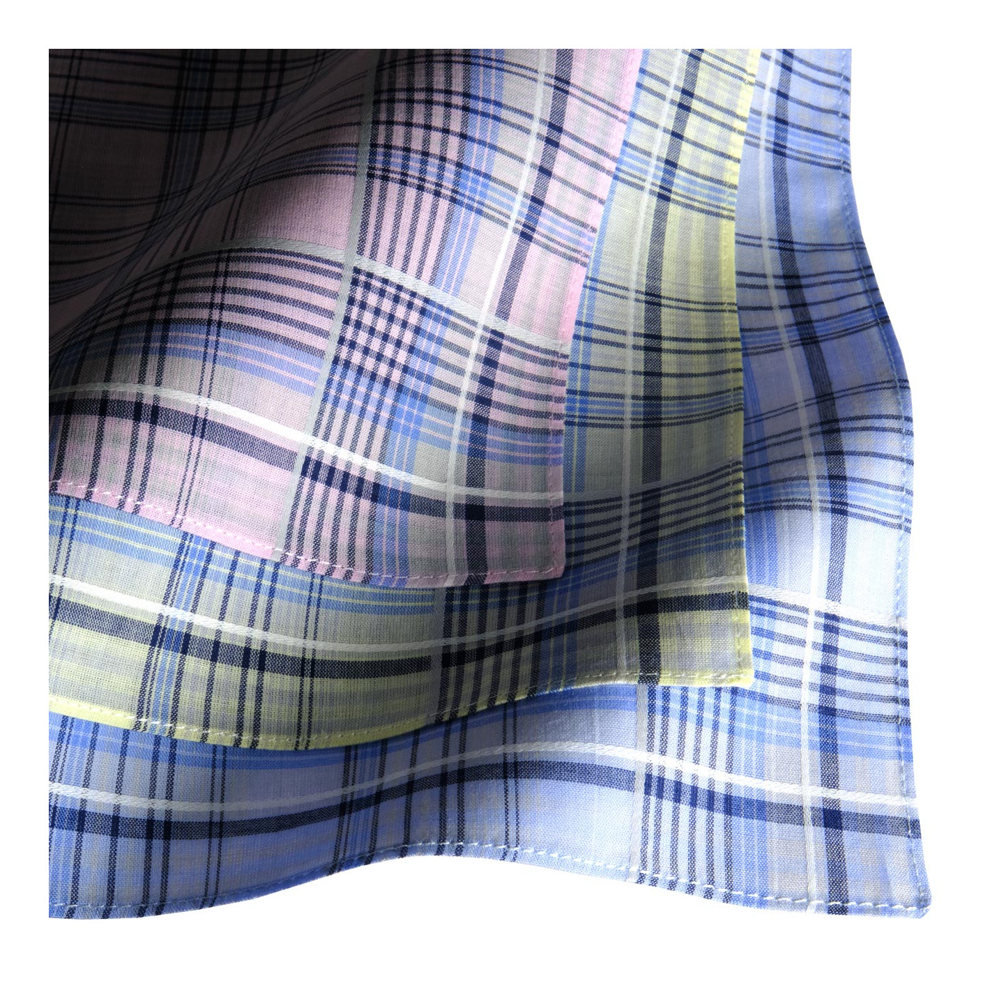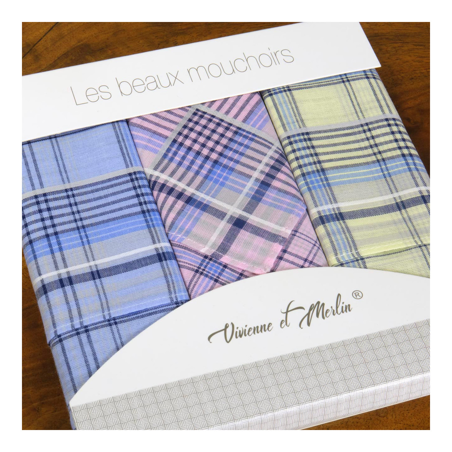 - Assortiment de 3 mouchoirs aux couleurs assorties, conditionnés dans un blister cartonné.