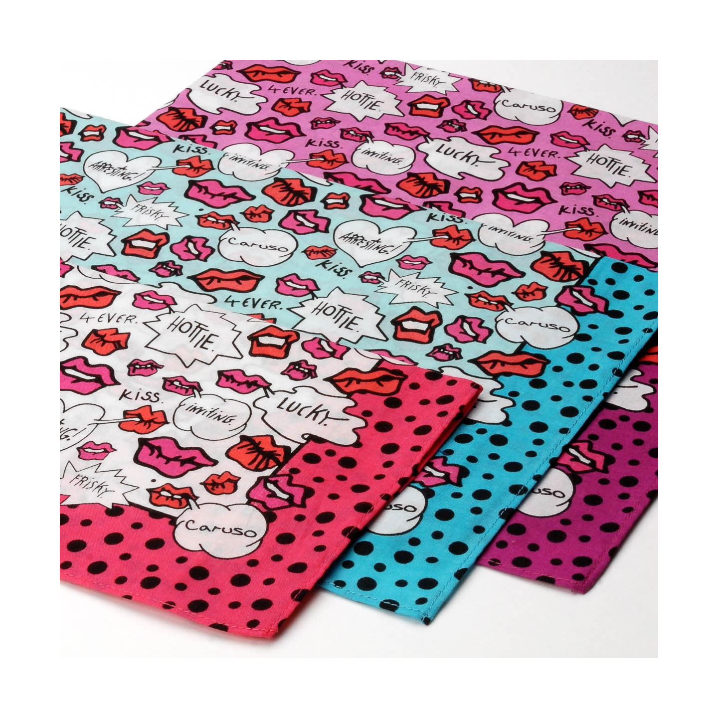 Déclinaison de 3 mouchoirs en sachet cristal.