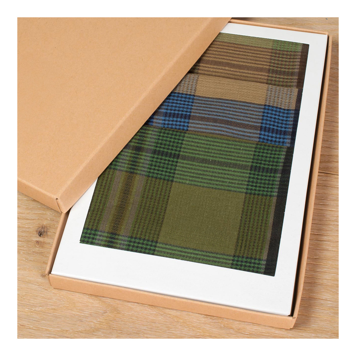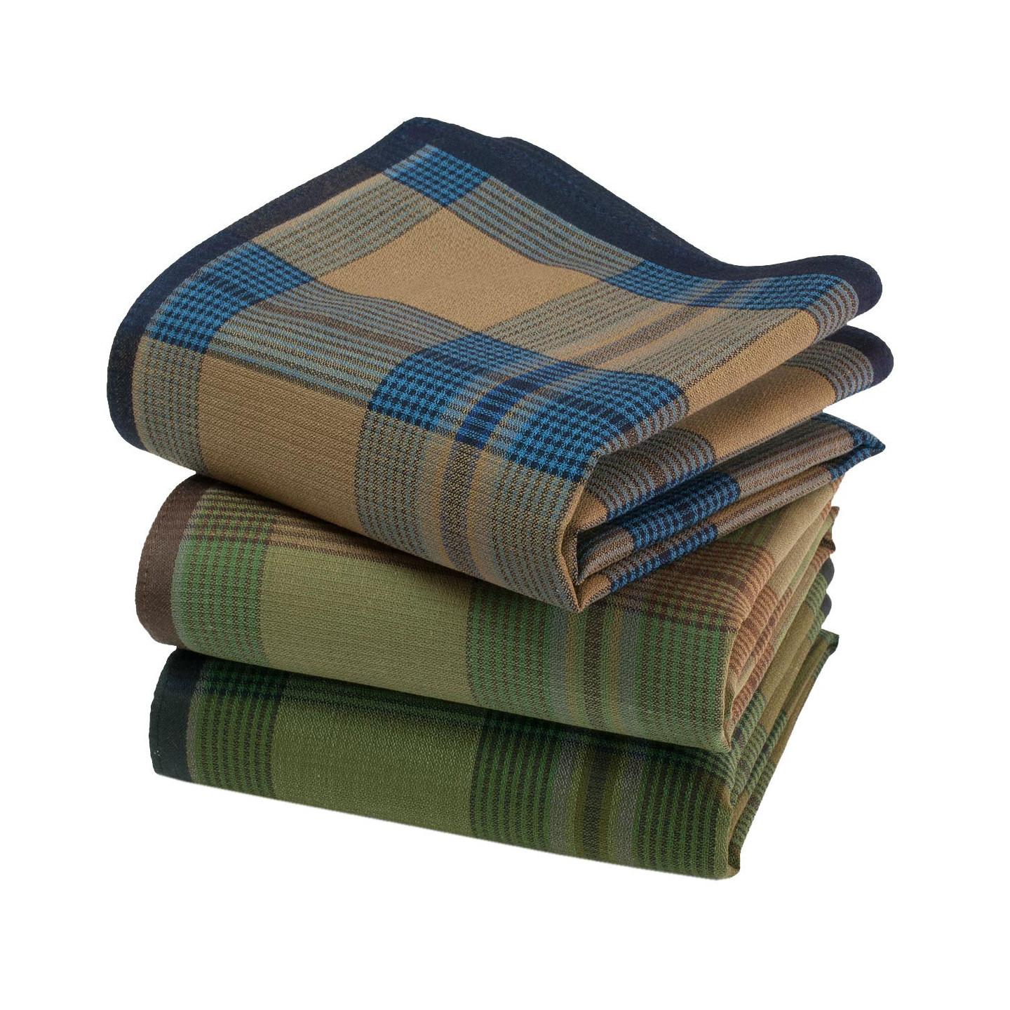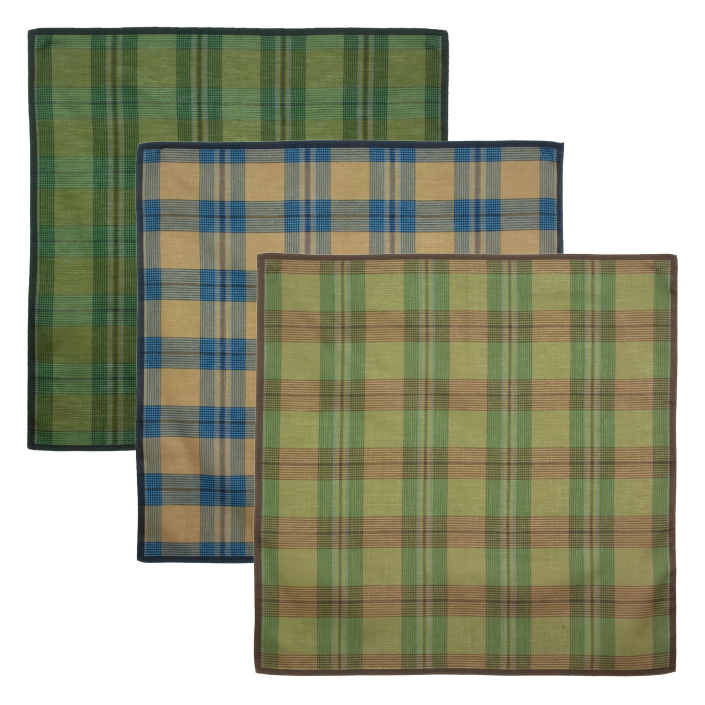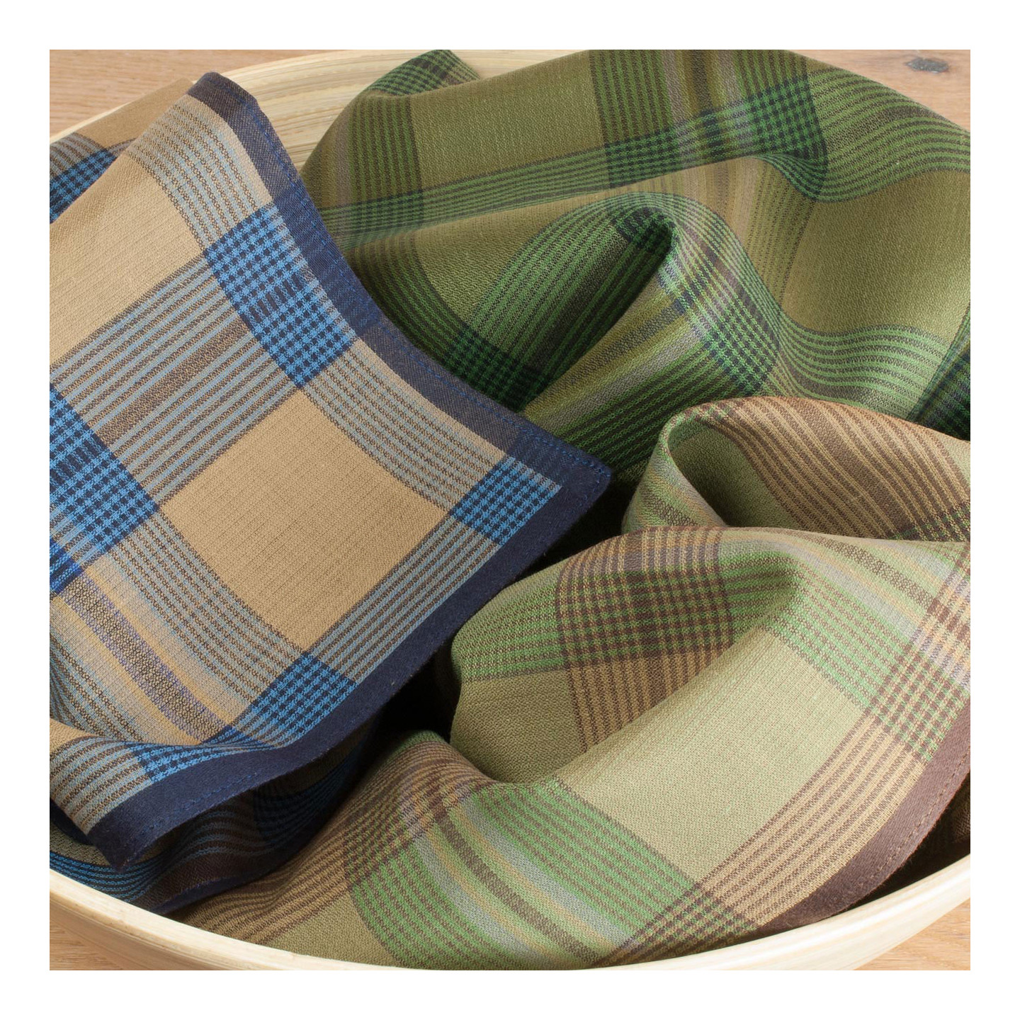 Des mouchoirs tartan qui fleurent bon la bruyère et les balades dans la lande. Pour les gentlemen qui aiment le chic campagne anglo-saxon. Trois mouchoirs haut de gamme dans des couleurs beige-kaki.