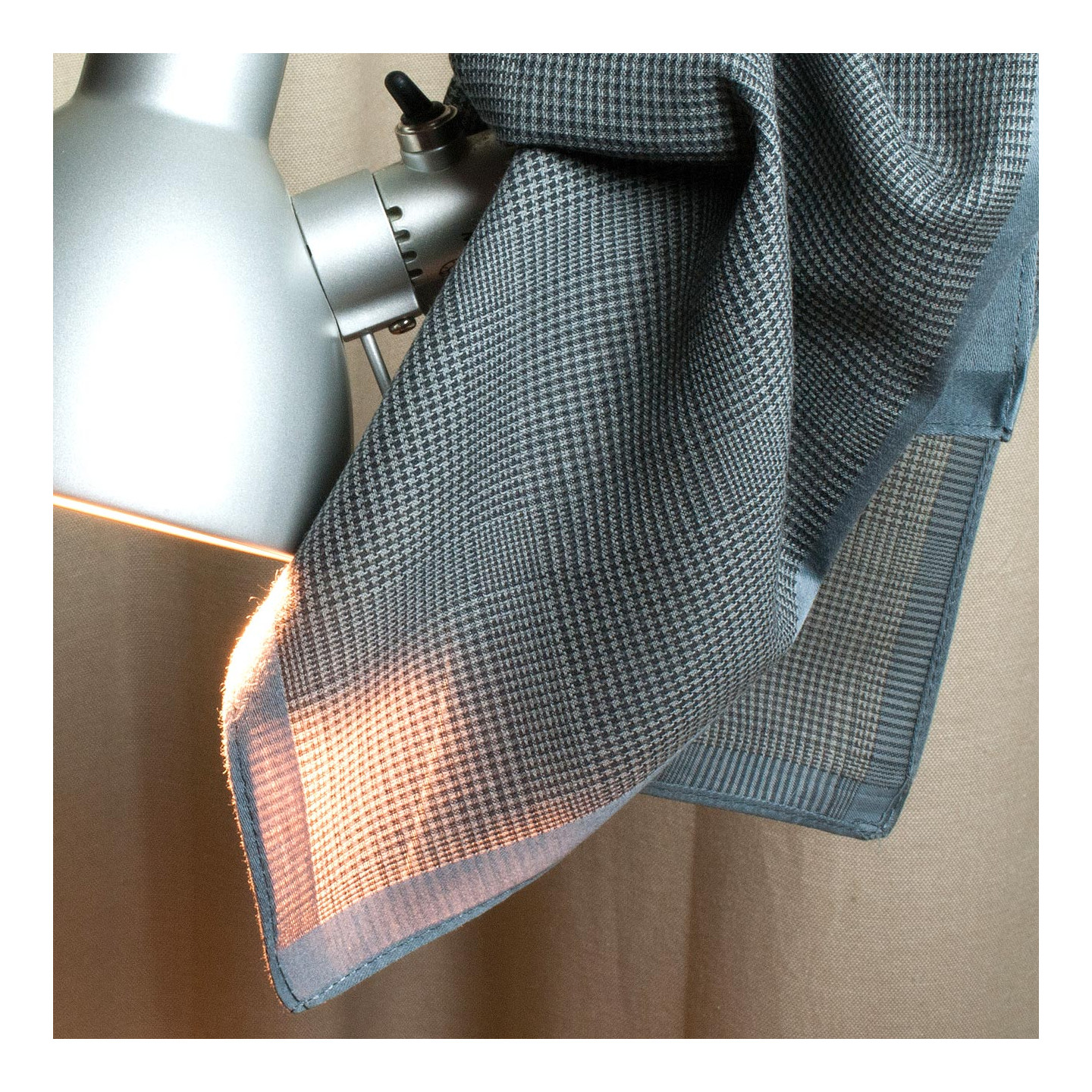 Merrysquare : une conception soignée Découvrez la qualité de nos mouchoirs conçus avec soin en France. Motif Prince de Galles, coton naturel, respect de l’environnement. #qualité #style #luxe