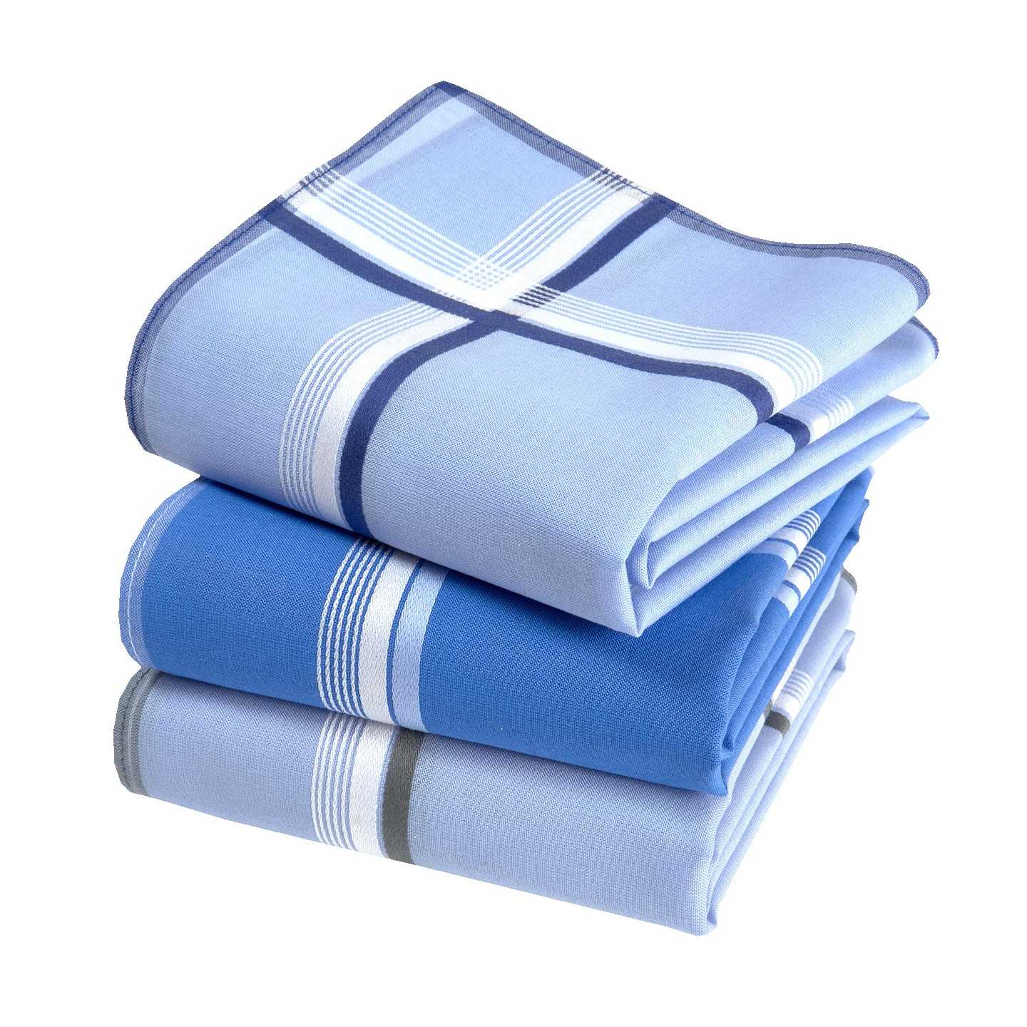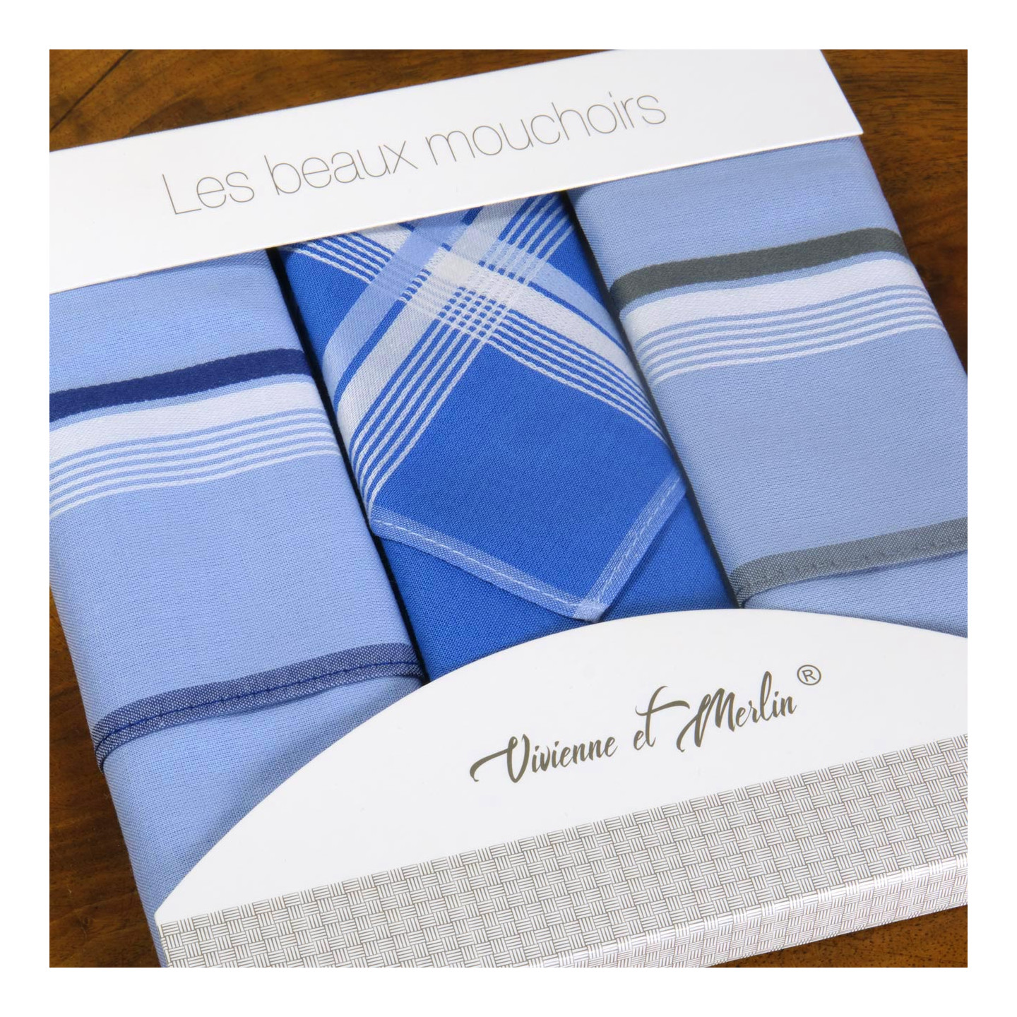 - Assortiment de 3 mouchoirs aux couleurs assorties, conditionnés dans un blister cartonné.