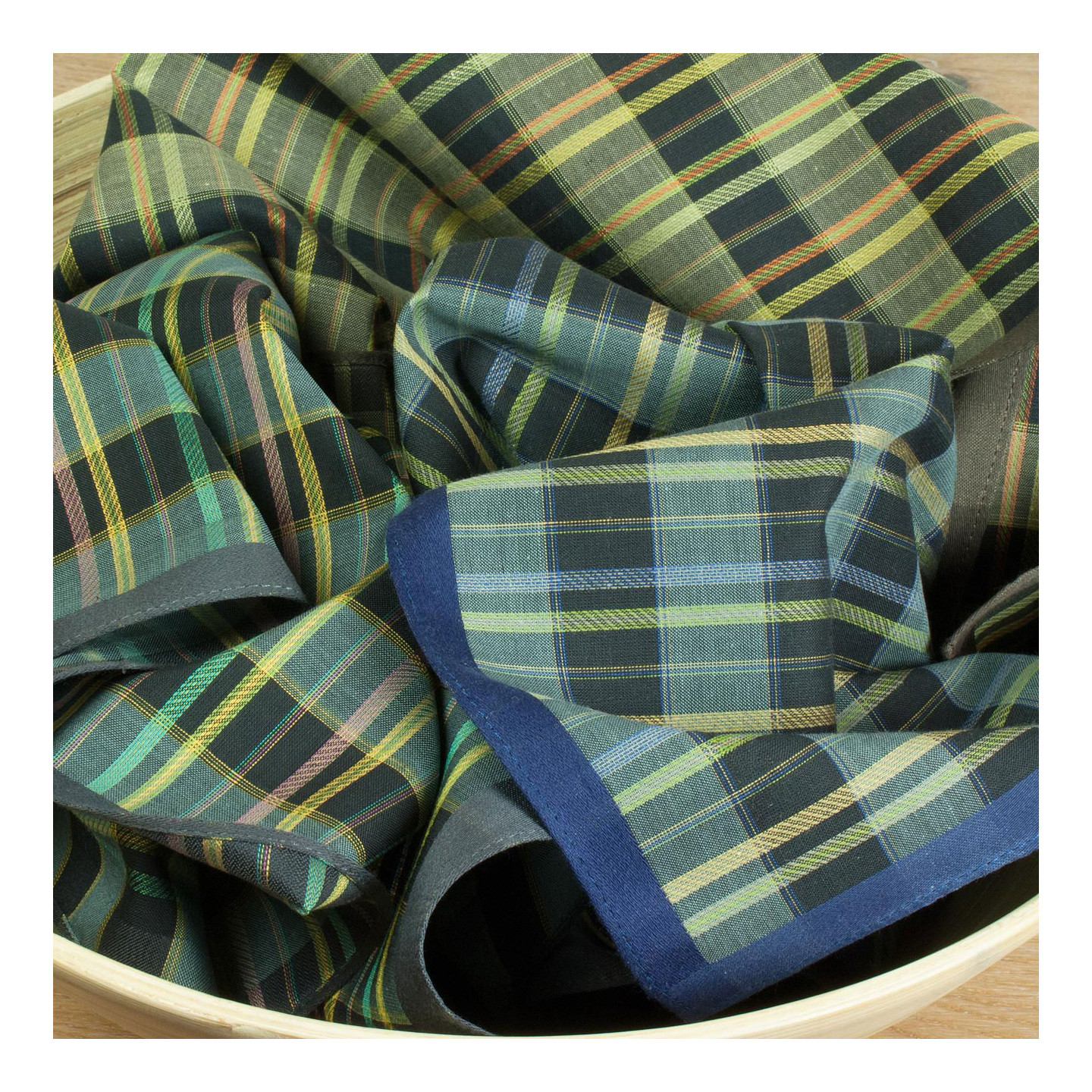 TISSSE-TEINT 100% COTON 60S ♦ Pur coton teinté dans la masse avant tissage pour une meilleure tenue des couleurs dans le temps. Une étoffe d’une qualité supérieure, légère et soyeuse qui s’adaptera à toutes les poches, quelle que soit leur taille. Très belles finitions consistant en un fin et très discret ourlet piqué à plat aux coins parfaitement cousus. De beaux mouchoirs à l’élégance discrète.