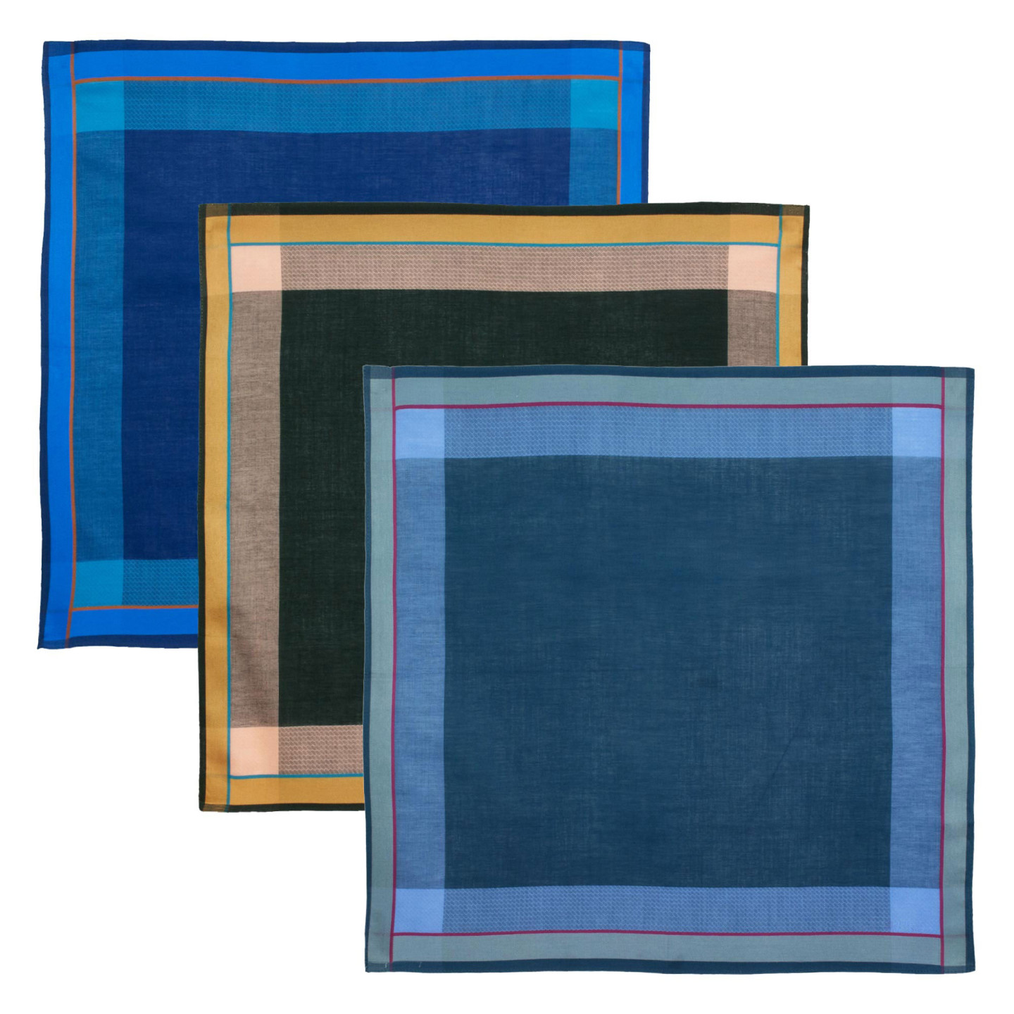 TAILLE APPRÉCIÉE ♦ D’une taille courante habituelle de 42cm, ces mouchoirs conviendront à tous les messieurs. Bonne tenue au lavage à 60°. Attention aux couleurs soutenues qui pourraient nécessiter un lavage à part compte tenu d’un éventuel dégorgement. Repassage facile.