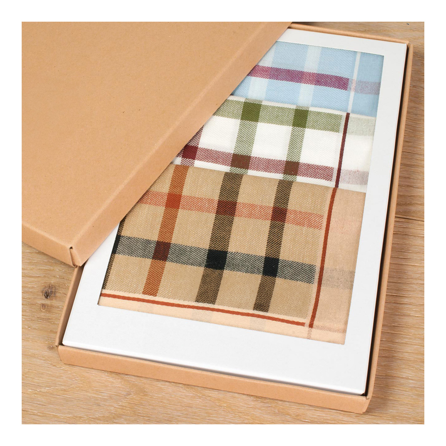 Ces mouchoirs vous plongent au cœur des Highlands aristocratiques. Parfaitement adaptés aux beaux jours, ce trio de mouchoirs coton à la distinction avérée s’harmonisera avec toutes les tenues des gentlemen. Un beige-marron, un bleu-bordeaux et un blanc-kaki. Vrai chic de plein air.
