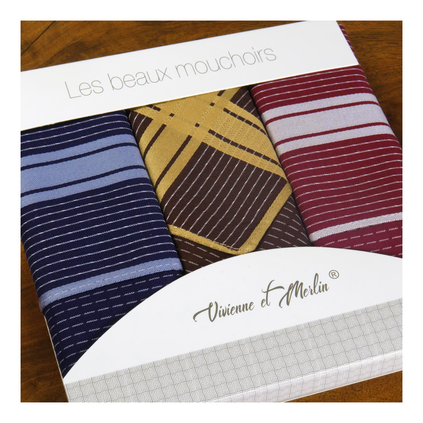 - Assortiment de 3 mouchoirs aux couleurs assorties, conditionnés dans un blister cartonné.