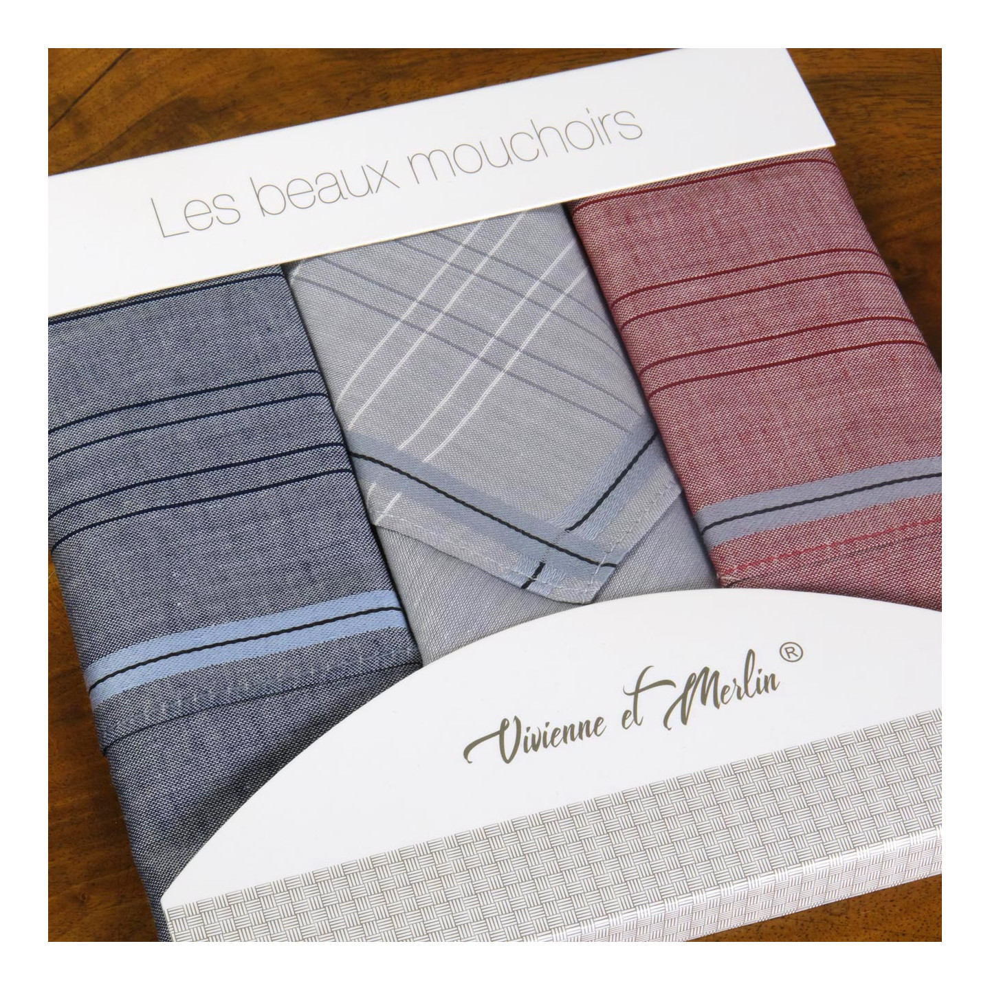 Nous sommes si fiers de cette collection exclusive que nous l'avons nommée 'LES BEAUX MOUCHOIRS' et signée du nom de l'entreprise.