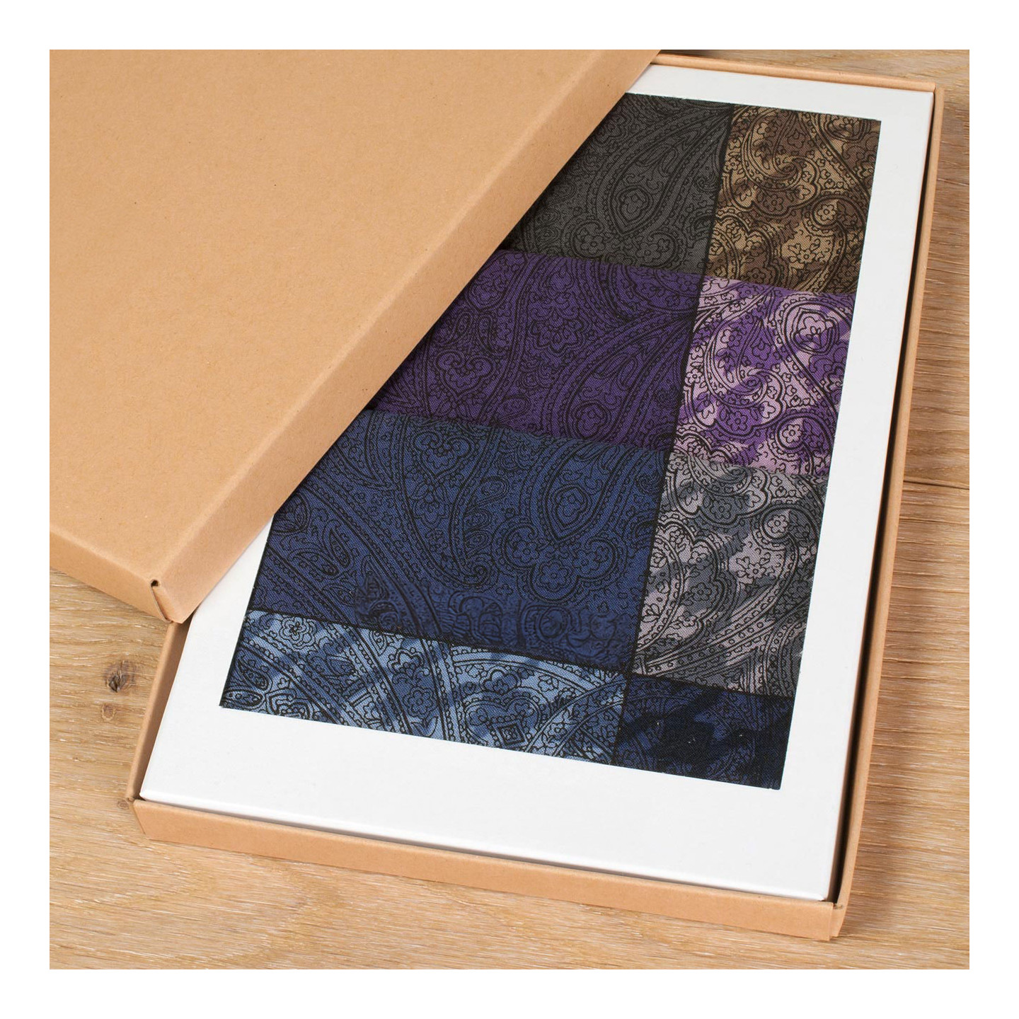 COFFRET KRAFT ♦ Présentés dans une séduisante boîte cloche en matériau recyclé, signée de la marque. D’origine, le couvercle est emboîté par-dessous et le tout protégé sous un film cristal pour une visualisation optimale des motifs. Un cadeau remarquable.
