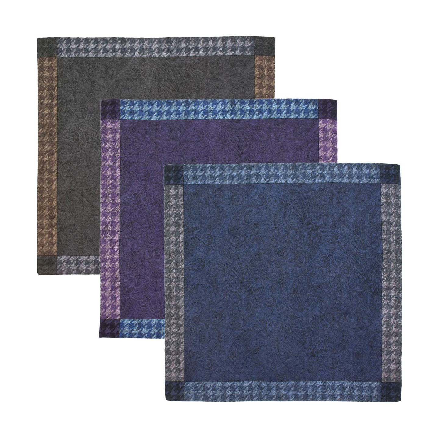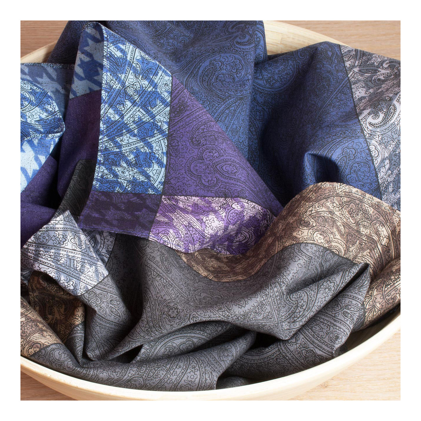 IMPRIME 100% COTON 60S ♦ Un motif réalisable par la seule technique de l’impression avec donc un envers de tissu moins colorisé. Une étoffe d’une qualité unique qui, dans la main, offre souplesse et légèreté. Remarquables finitions consistant en un discret ourlet piqué à plat aux coins parfaitement cousus. Des mouchoirs mais aussi des accessoires de mode.