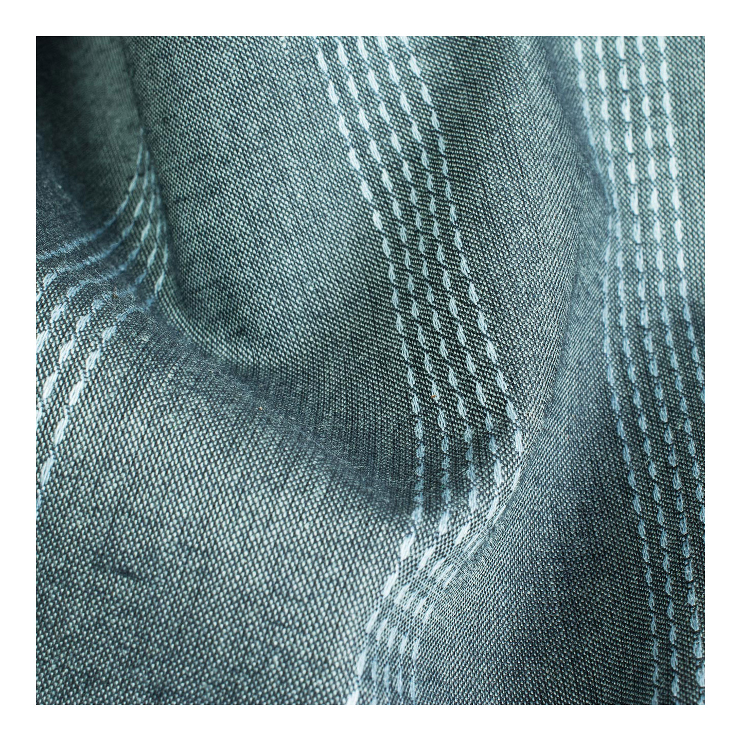 TISSE-TEINT 100% COTON PEIGNE 40S ♦ Pur coton teinté dans la masse avant tissage pour une meilleure tenue des couleurs dans le temps. Une étoffe d’une qualité unique, qui, dans la main, offre une sensation légèrement popeline, soyeuse et dense, très agréable pour des mains masculines. Remarquables finitions consistant en un discret ourlet piqué à plat aux coins parfaitement cousus.