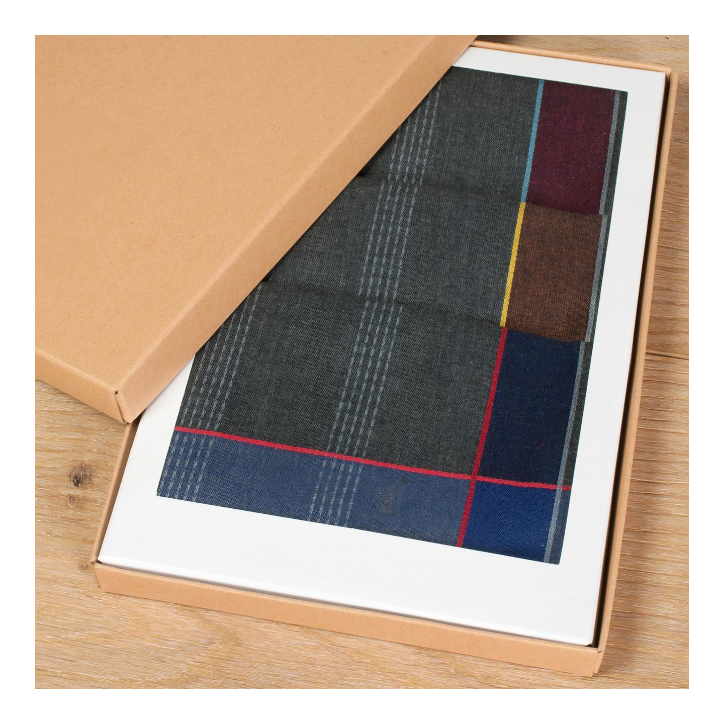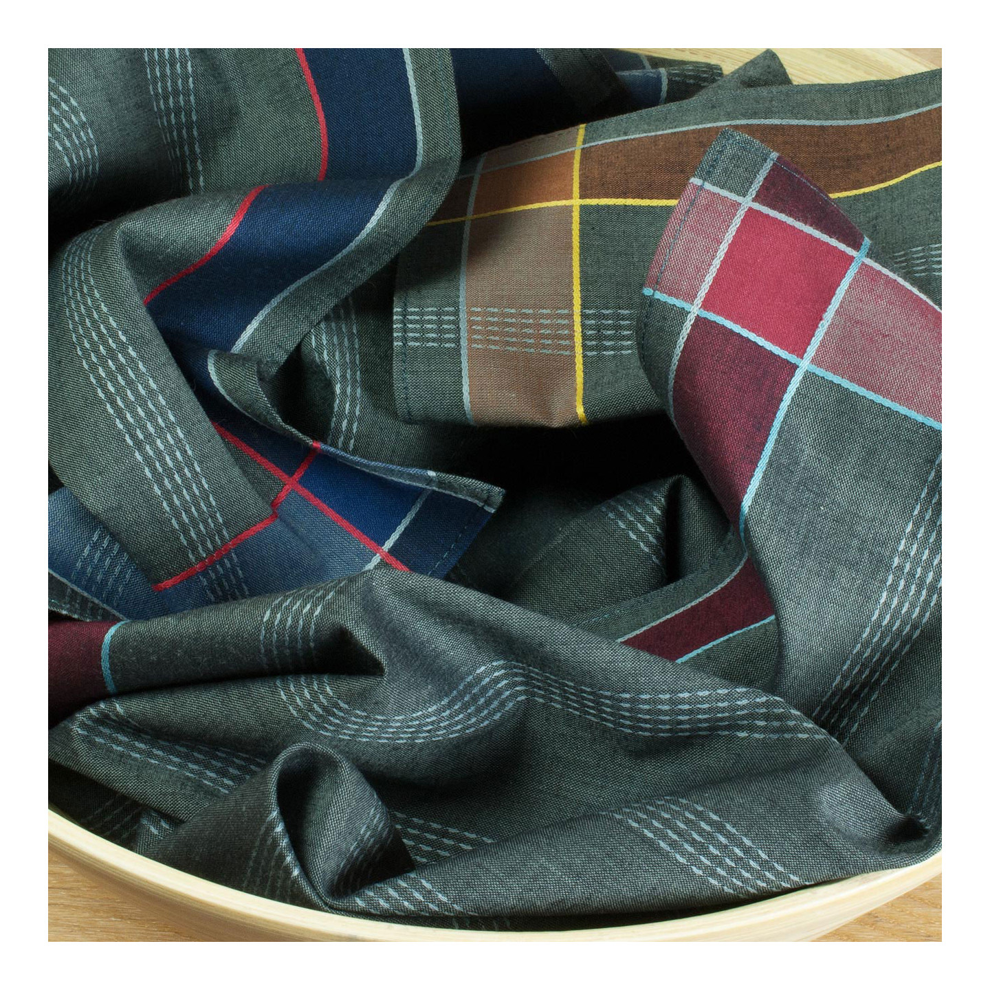 Ces beaux mouchoirs dans la couleur gris mode actuelle sont d’un ton affirmé et viril par leur surpiqûres verticales. Dans un style épuré tendance et particulièrement masculin, ils s’accorderont avec tous les vêtements. Un assortiment de trois mouchoirs aux liteaux bleu, bordeaux et marron.