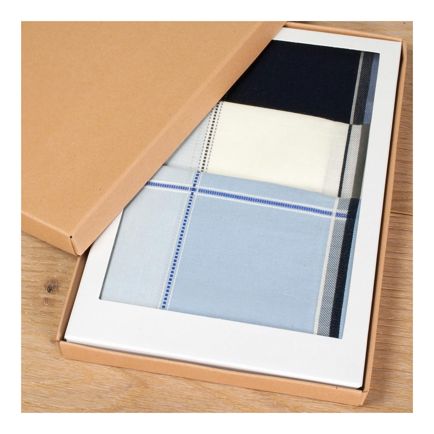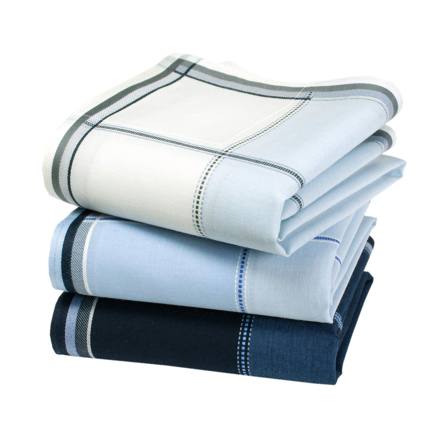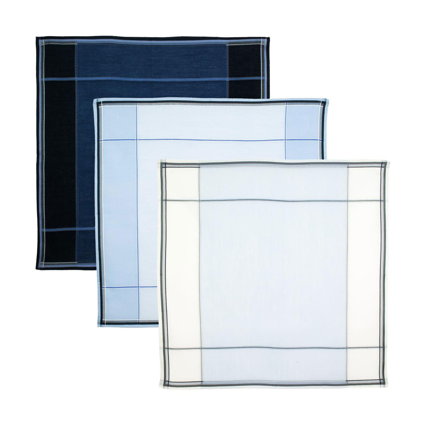 Cet assortiment de trois mouchoirs dans une tonalité de bleu ravira les amateurs de classicisme à la française. Le XVIIème siècle nous inspire toujours aujourd’hui dans les belles boutiques parisiennes. François et Jules Mansart les aimeraient...