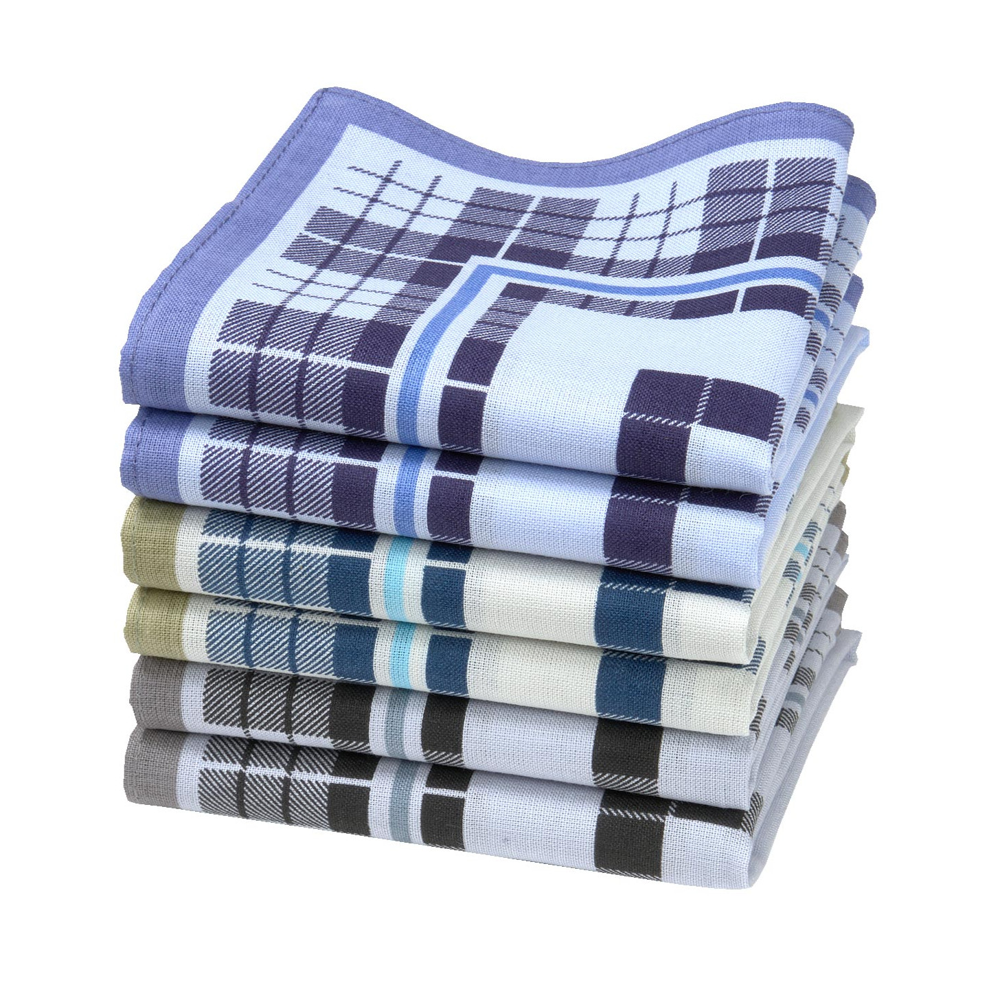 Assortiment de 6 mouchoirs, déclinés en 3 couleurs, conditionnés en sachet cristal.