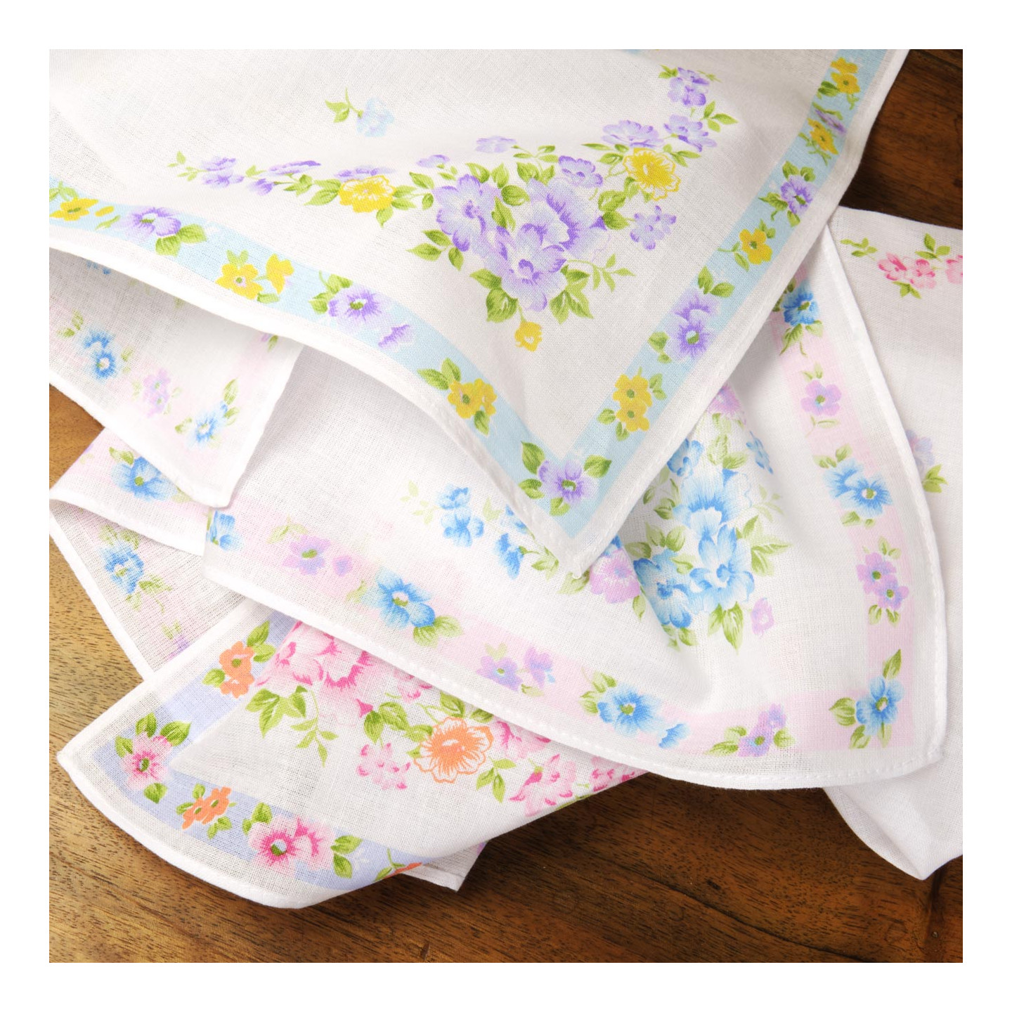 Avertissement : ces mouchoirs sont en tissu imprimé et donc, comme pour tous les imprimés, les couleurs du verso sont moins franches que celles du recto. Cependant, l'impression permet d'obtenir des motifs originaux, impossibles à obtenir en tissé-teint.