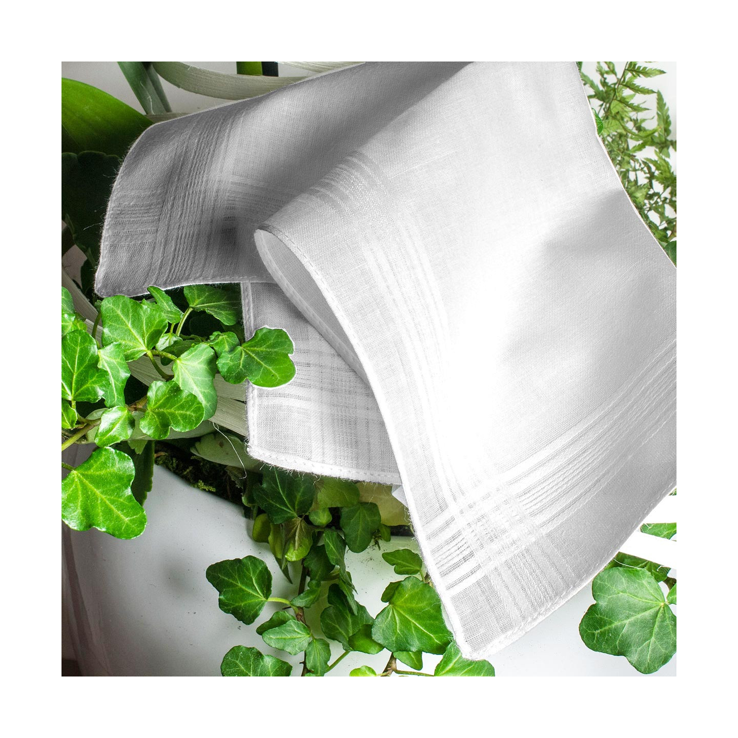 4 tailles de mouchoirs blancs disponibles chez merrysquare.com dans cette qualité très abordable :
