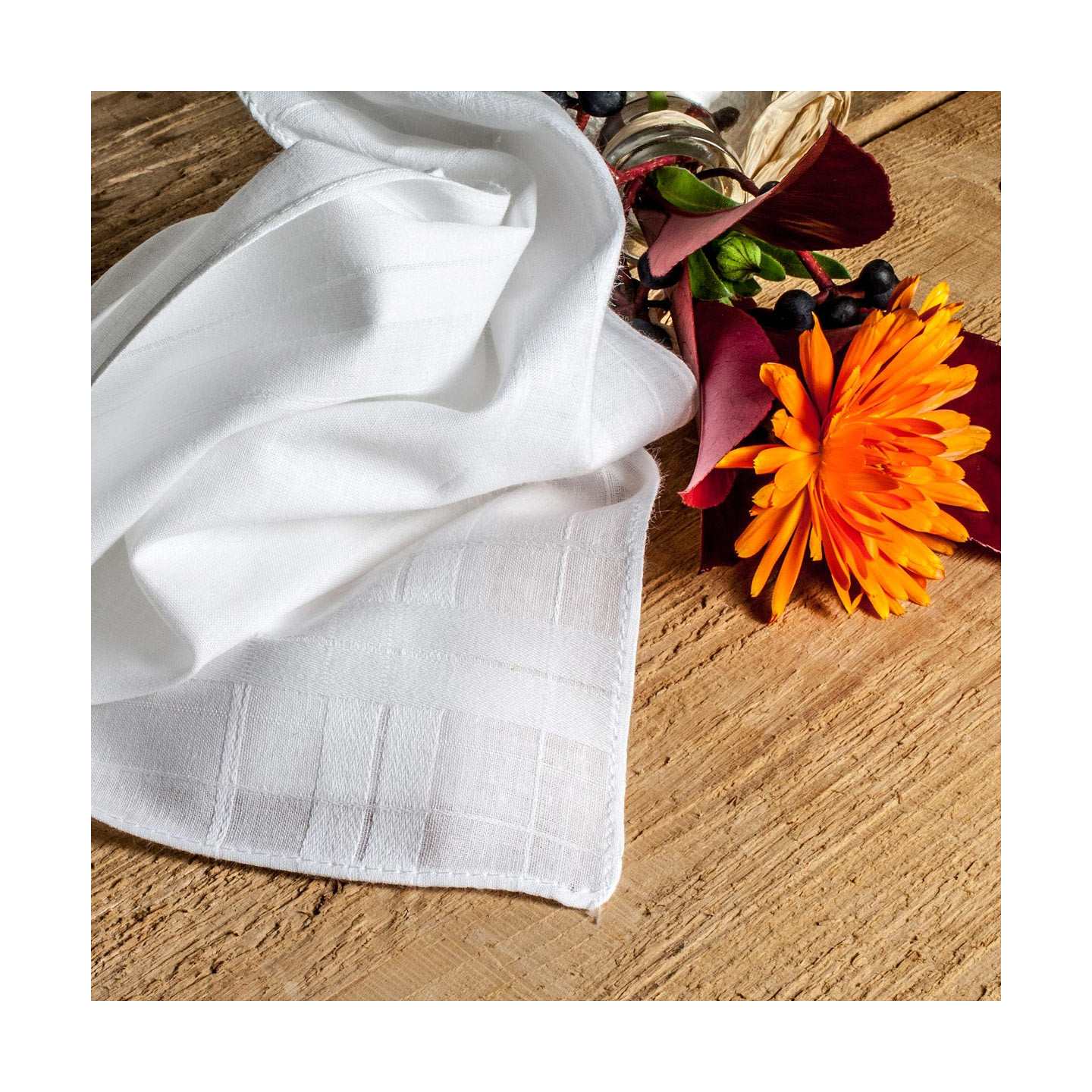 4 tailles de mouchoirs blancs disponibles chez merrysquare.com dans cette qualité très abordable :