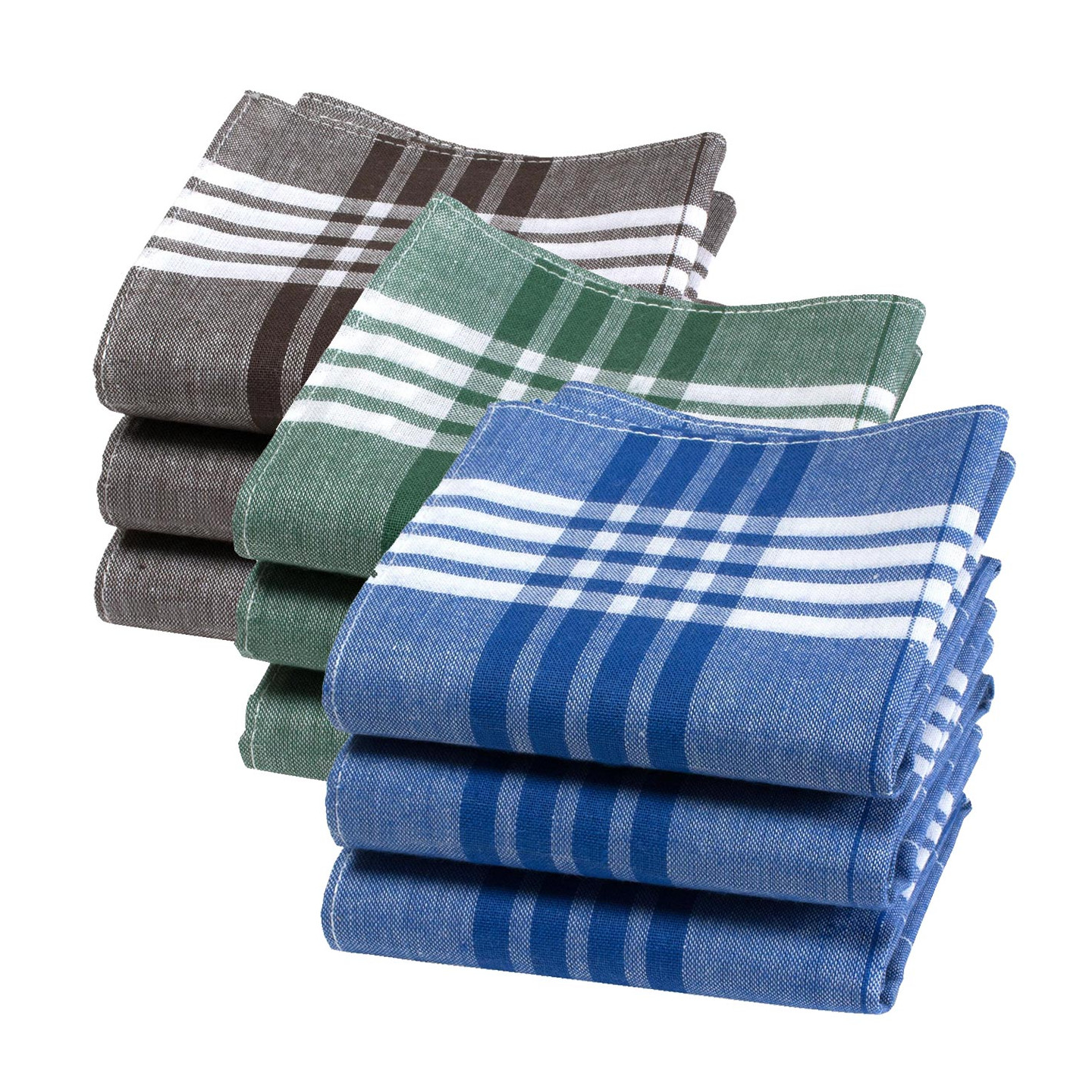 En 3 couleurs assorties : 3 brun, 3 verts et 3 bleus. Taille 41cm x 41cm.