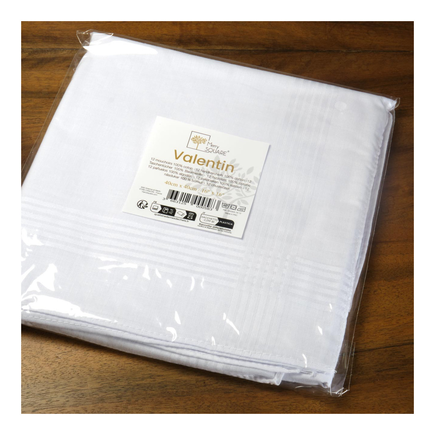 100% coton, taille 40cm x 40cm, en sachet cristal de 12 unités.