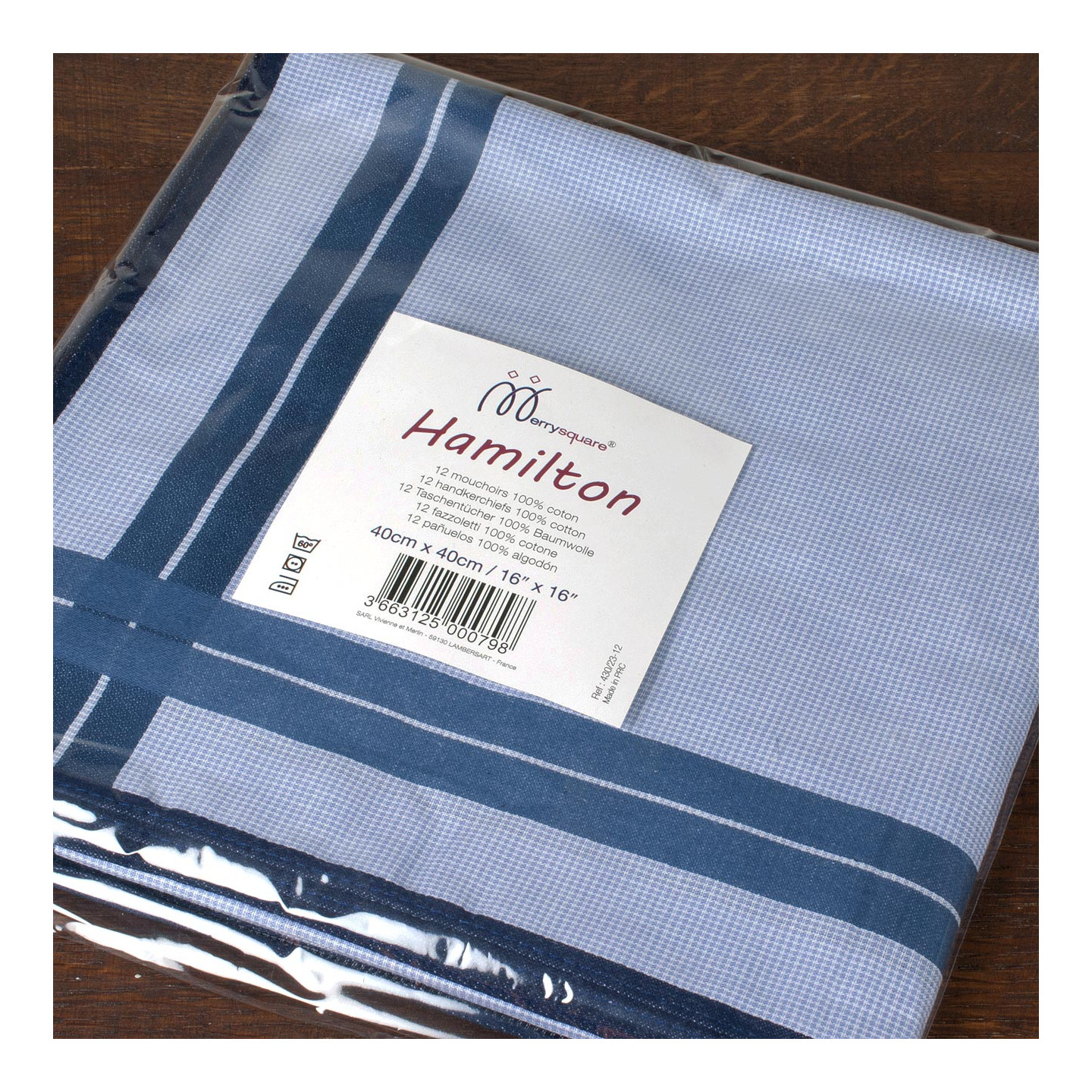 Taille 40cm x 40cm, 100% coton. Conditionnés en sachet cristal de 6 ou 12 mouchoirs (choix à réaliser au moyen des boutons à cocher ci à droite).