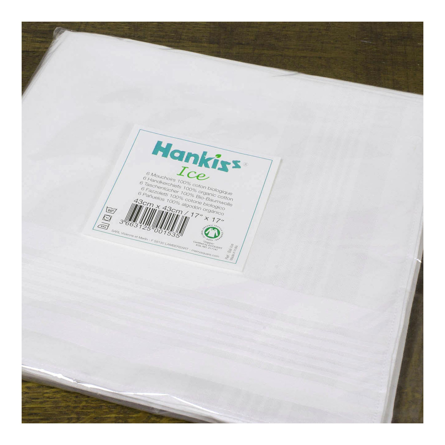 Mouchoirs en coton bio "HANKISS Ice" (x6)