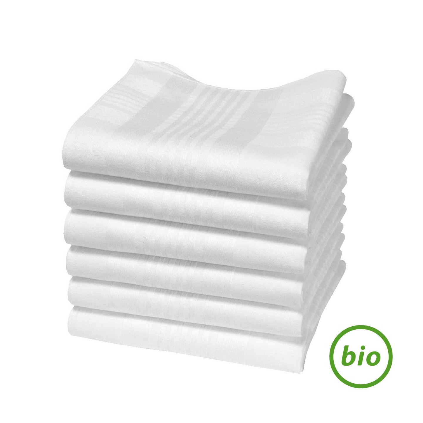 Taille environ 43cm x 43cm, 100% coton bio certifié GOTS, en sachet de 6 unités.
