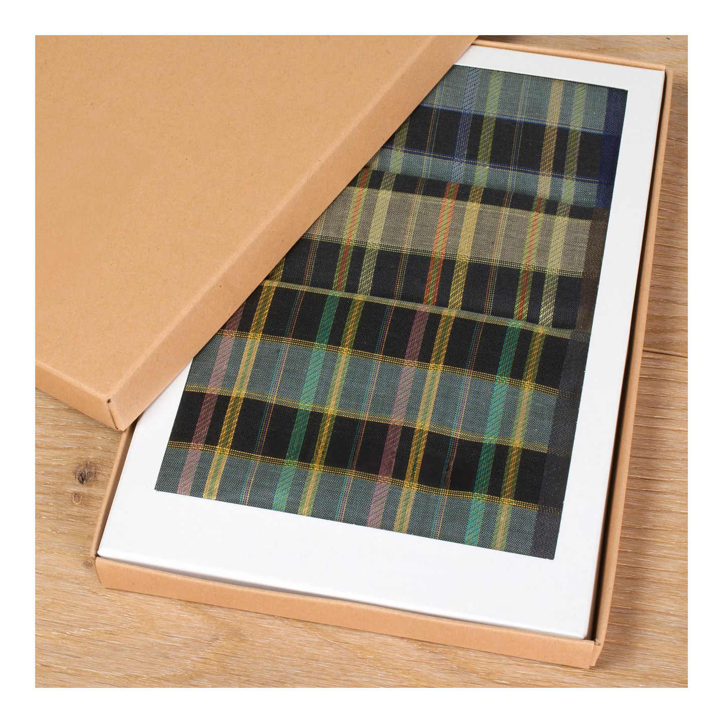 Une variation harmonieuse d’un quadrillage ouvragé d’anthracite et de jaune assourdi. Des couleurs tout à la fois sport et élégantes. Bon goût et subtilité au rendez-vous. Trois mouchoirs haut de gamme dans des couleurs assorties.